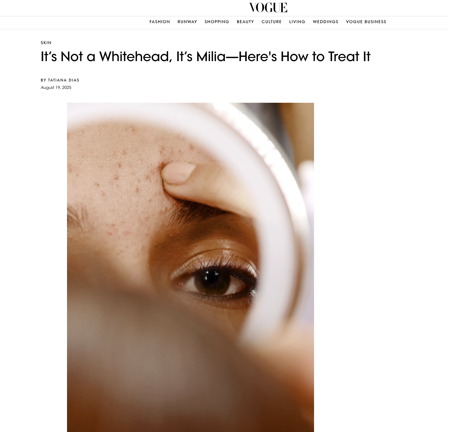 It's not a Whitehead, It's Milia - Here's How to Treat It for Vogue