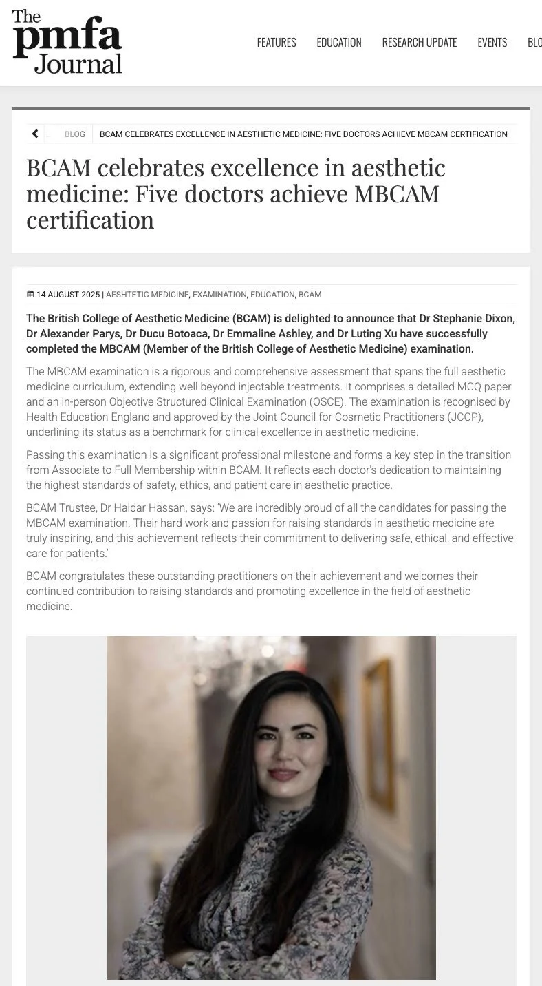 BCAM celebrates excellence in aesthetic medicine: Five doctors achieve MBCAM certification from the PMFA Journal